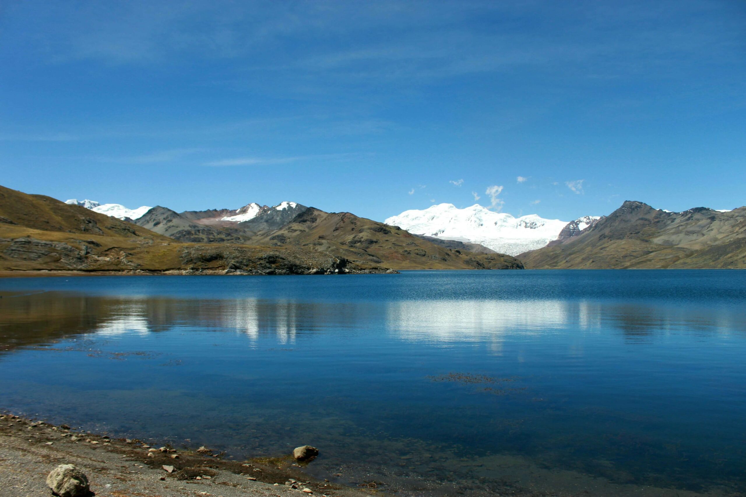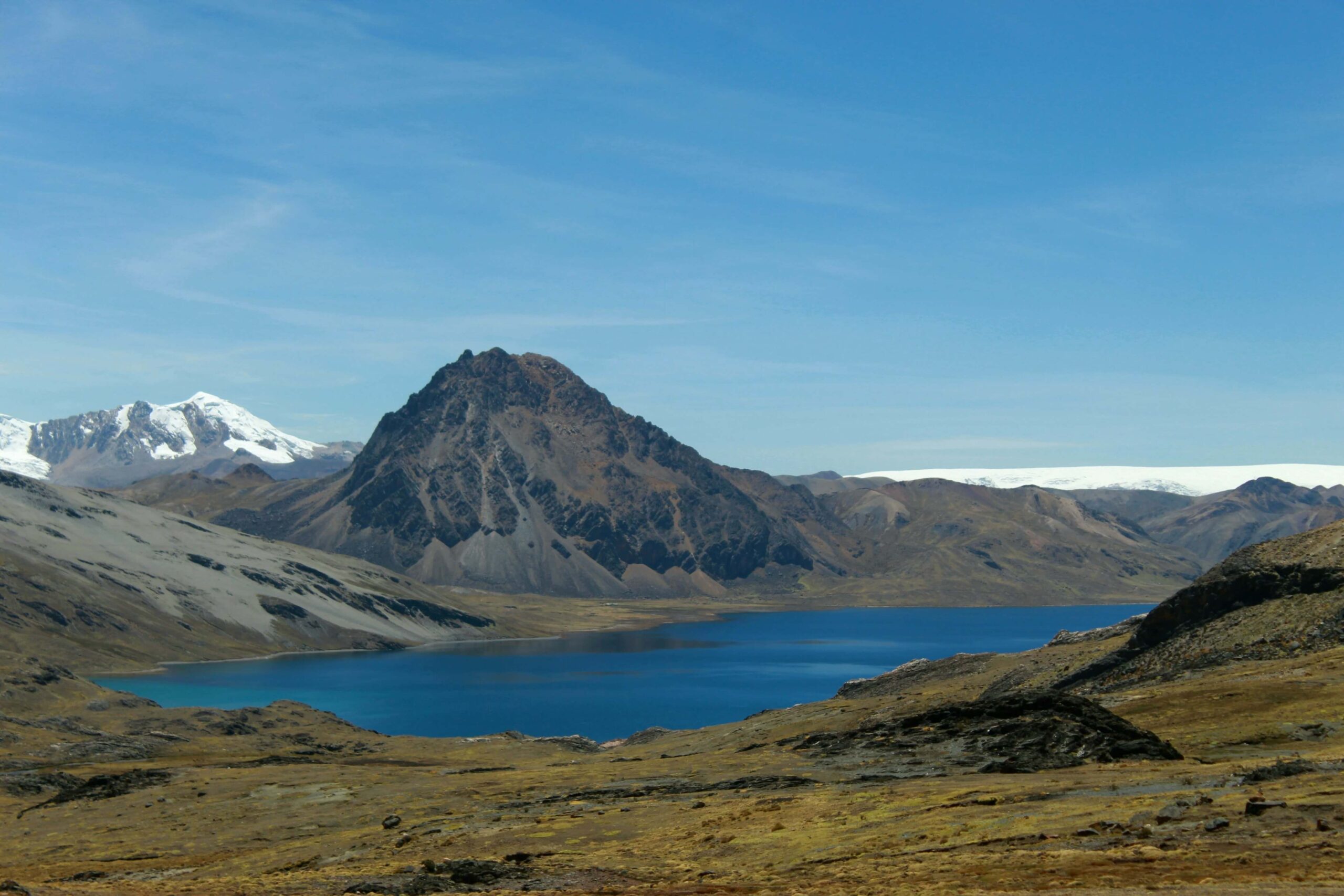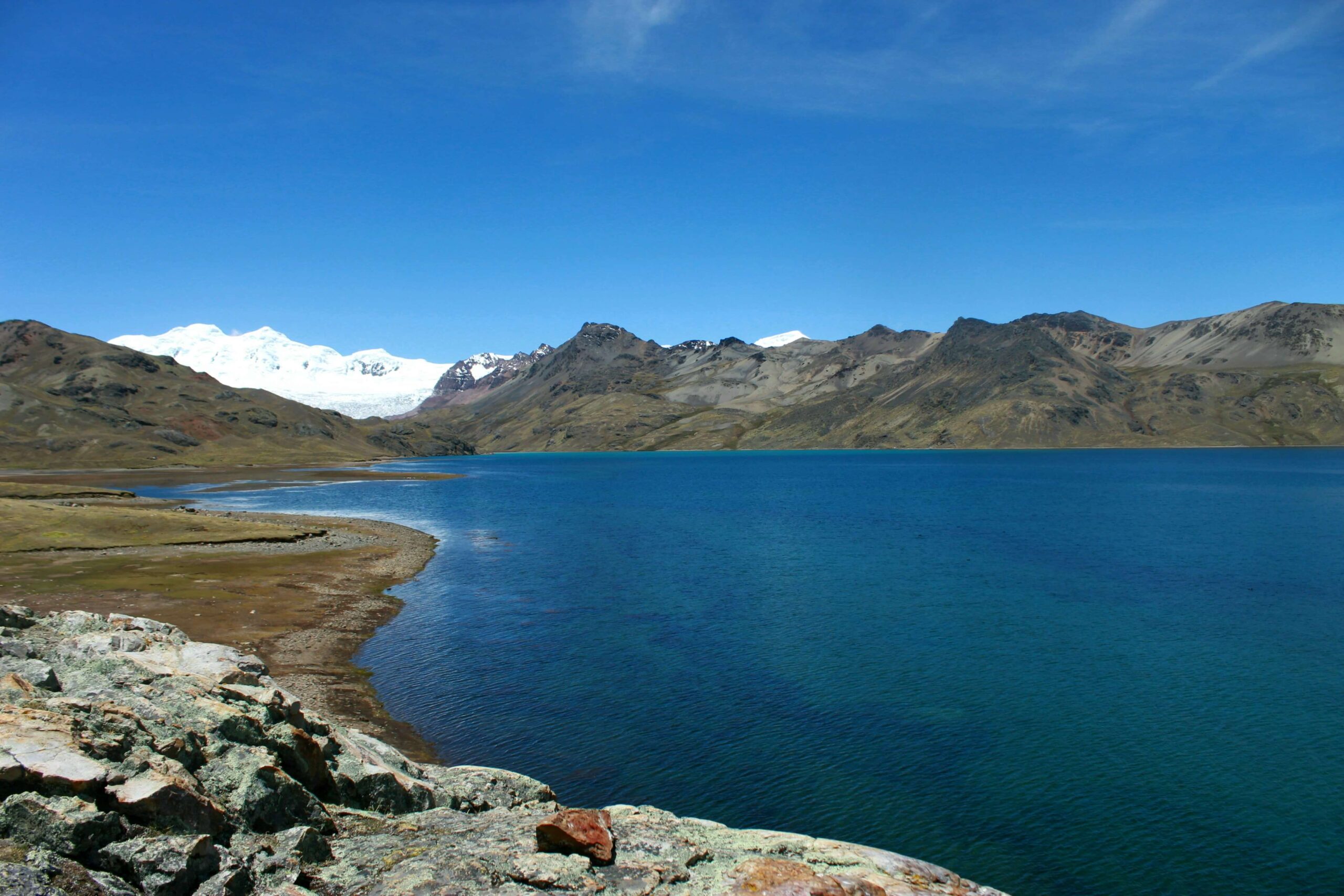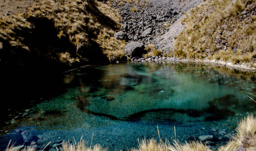 The Sibinacocha lagoon is an impressive blue-green lake, considered a tropical paradise due to its spectacular landscape, since it is surrounded by immense mountains and snow-capped peaks such as (snowy Janapapunta, snow-capped mountain Apucuchu, Misti Chumpe and Q’elca). This lagoon of glacial origin has a very large extension, covering an area of 25 kilometers and a height of 150 meters at its deepest point.