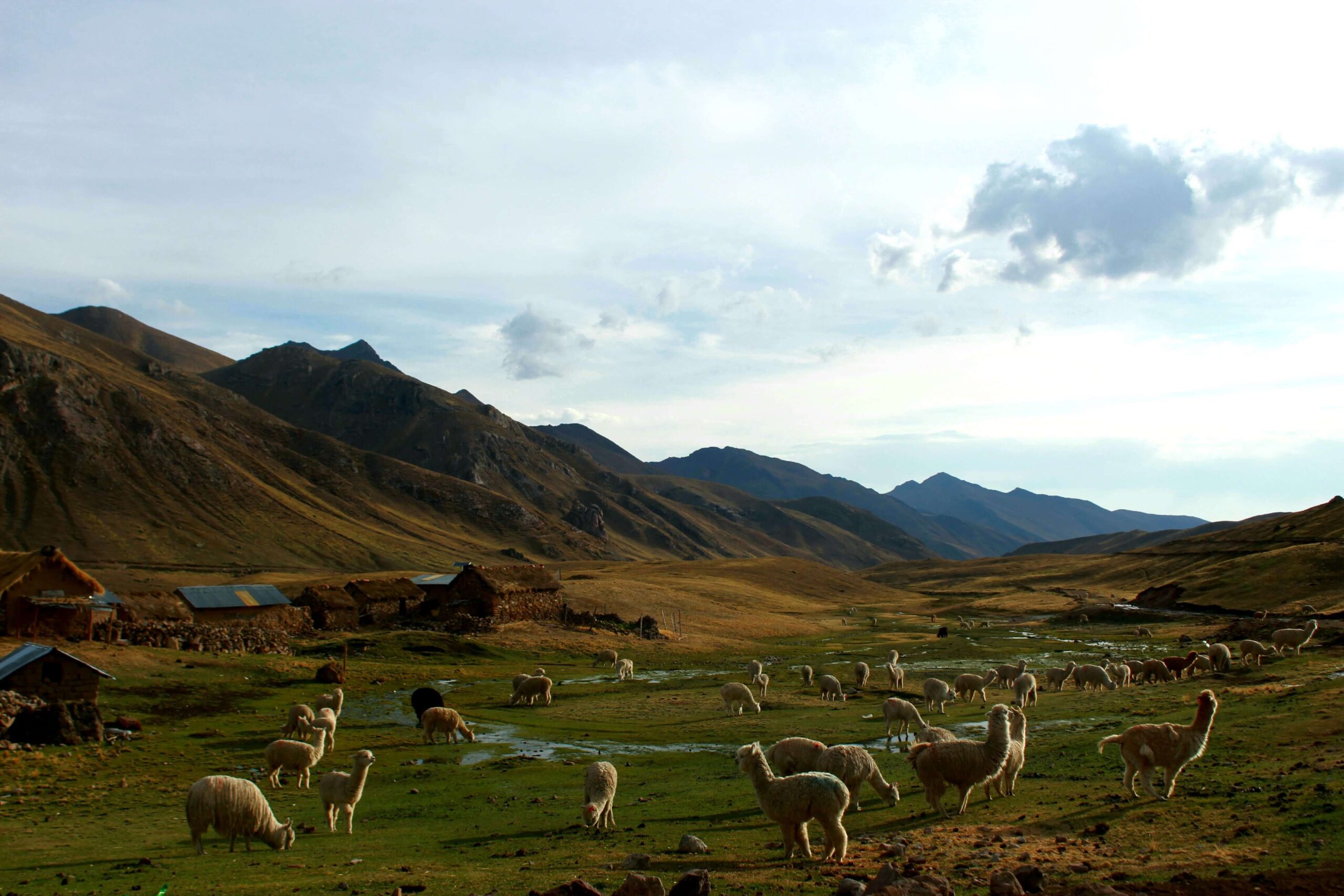 Continuing with this memorable Ausangate Trek and Lake Sibinacocha trip. You will hike a little uphill for 45 minutes to then enter a plateau, overpopulated of thousands of Vicuñas (Vicuña, is a South American camelid similar to the alpaca, but smaller. Its fur is considered the finest in the world). As a curious fact, you should know that a scarf made with Vicuna hair costs around 1,000 dollars. Then, you will hike for three hours to the Mormorani hamlet, where only 1 family with 3 little kids live. where we will spend the night.