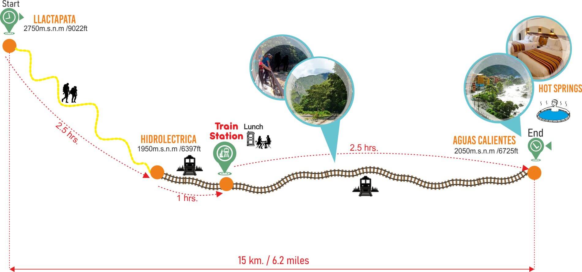 After an early wake up, we will go to a platform to see the sun up over Machu Picchu. Let’s enjoy breakfast to then descend for three hours to Hidroelectrica; here will have a buffet lunch.