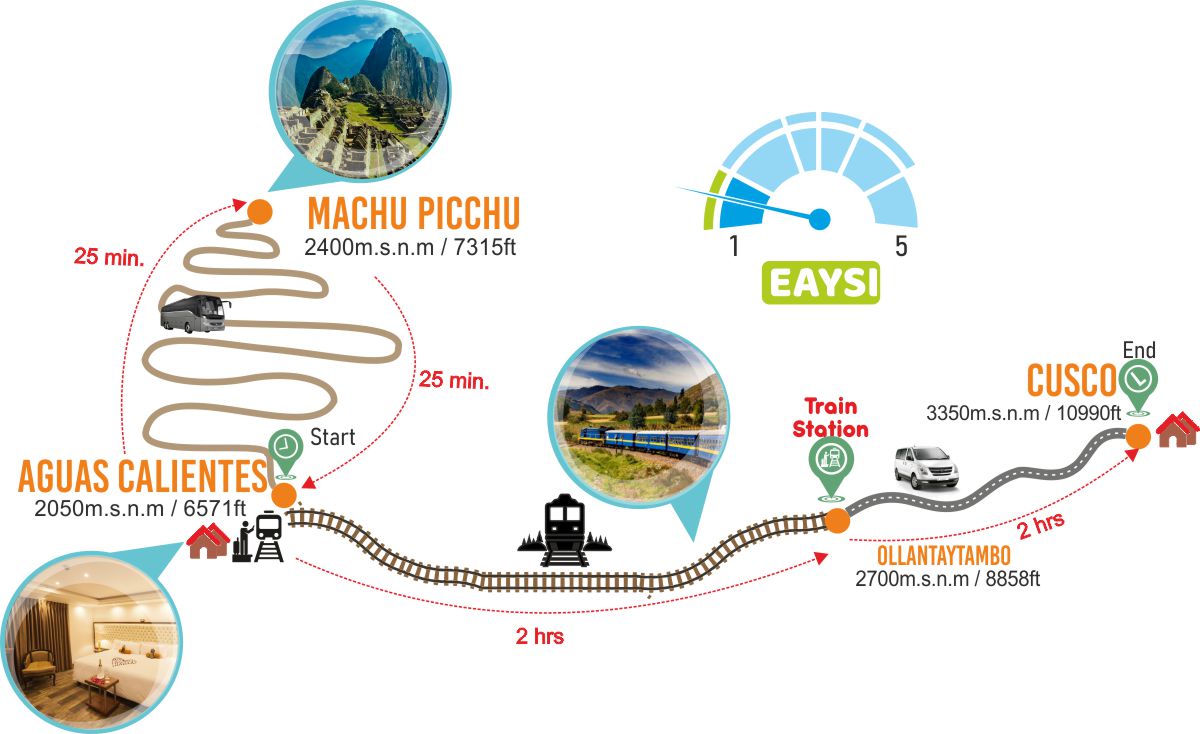 Then we take the bus back at more or less 12:00 pm. Down to Aguas Calientes to enjoy without rush our lunch. This lunch is optional and not included. At lunch, your guide will deliver out train tickets, so if you opt to skip this; please arrange to get these train tickets before leaving your tour guide at Machu Picchu citadel. Unless you requested for an upgraded train, we will book the Expedition class train departing Aguas Calientes at 3:20 p.m. or 4:22 p.m. This will be a 2-hour drive to Ollantaytambo or 4 hours to Poroy (this is based on which train you board). At Ollantaytambo or Poroy, an INCAS PATH driver will meet you and drive you back to Cusco, then we drop you off at the door of your hotel or the closest possible if there is not car access until your accommodation.