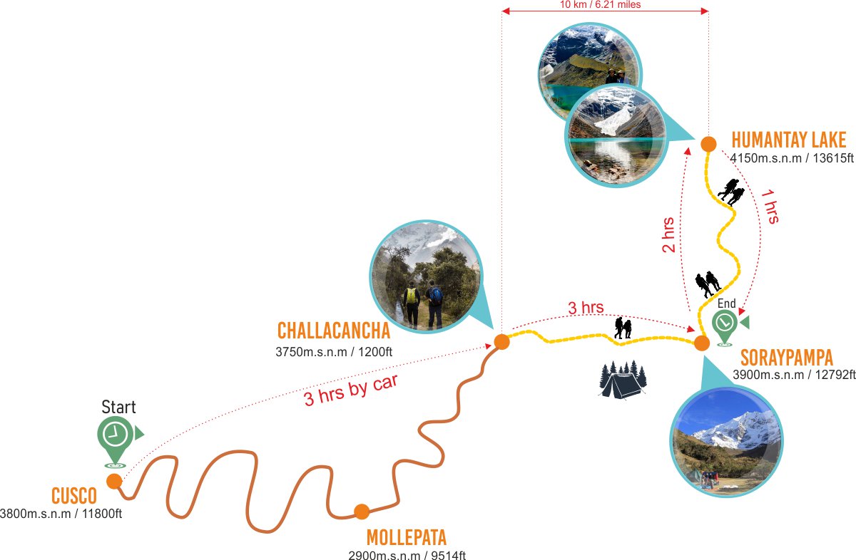 • Be the first to reach the Humantay lake and the Salkantay snow-capped mountain and enjoy a beautiful sunrise, avoiding the crowds.